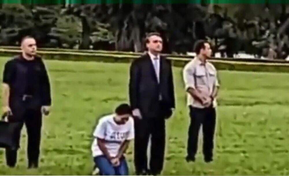 A poucos dias de deixar o governo, o presidente Jair Bolsonaro e a primeira-dama, Michelle, foram ao encontro de apoiadores que se aglomeraram diante do Palácio da Alvorada, em Brasília (DF). Mais uma vez, o chefe do Executivo não deu declarações e acompanhou a cerimônia de arriamento da bandeira por cerca de dez minutos em silêncio. Também calada, a primeira-dama se ajoelhou quando o grupo começou a fazer uma oração.
