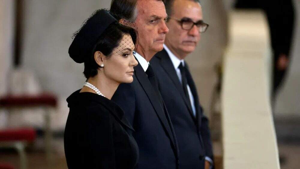 O presidente Jair Bolsonaro desembarcou, na manhã deste domingo (18), em Londres, na Inglaterra, para acompanhar as cerimônias de despedida de Elizabeth II. Ao lado da primeira-dama Michelle, Bolsonaro visitou o caixão da rainha em Westminster Hall.