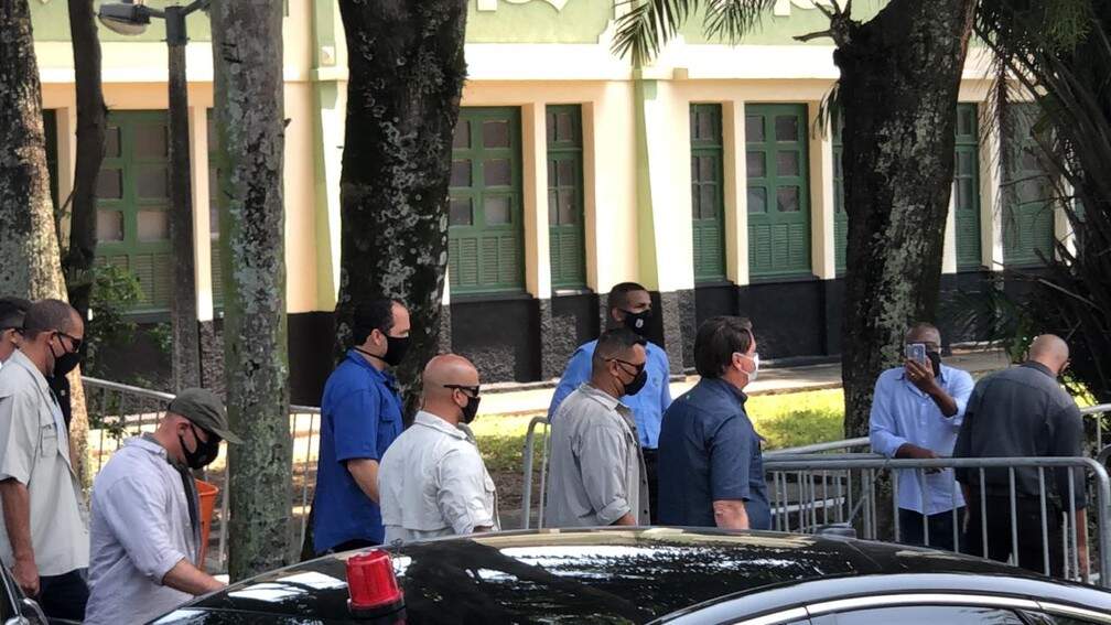 Foto: Henrique Coelho/G1 RioO presidente Jair Bolsonaro chegou para votar às 10h07 deste domingo (15) na Escola municipal Rosa da Fonseca, na Praça Marechal Hermes, na Vila Militar, Zona Oeste do Rio de Janeiro. Ele saiu do carro já com a máscara no rosto e cumprimentou um grupo de nove eleitores.