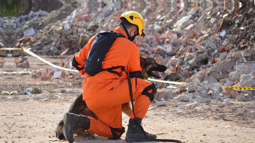 Binômios são especializados na localização de pessoas em áreas de desastres.