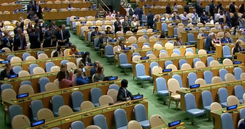 Durante o discurso do primeiro-ministro israelense, as nações que acompanhavam reagiam com palmas e vaias, conforme ele prometia novas retaliações ao Irã, caso haja novo ataque do país vizinho, e afirmava que não vai recuar da Faixa de Gaza enquanto o Hamas não devolver todos os reféns israelenses com vida.