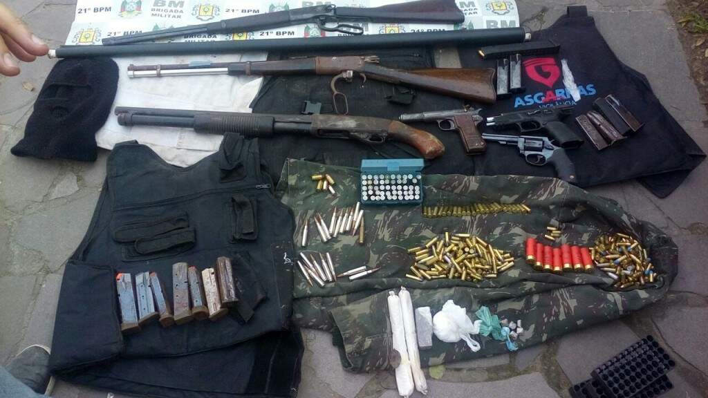Com a quadrilha foram encontrados duas pistolas calibre 9mm, uma espingarda calibre 12, duas carabinas calibre 38, 14 carregadores de diversos calibres, quatro coletes a prova de balas, mais de 350 munições de diversos calibres, tijolo de maconha, uma porção de cocaína e dois explosivos. Os agentes deram voz de prisão ao grupo que foi encaminhado à Delegacia de Polícia.