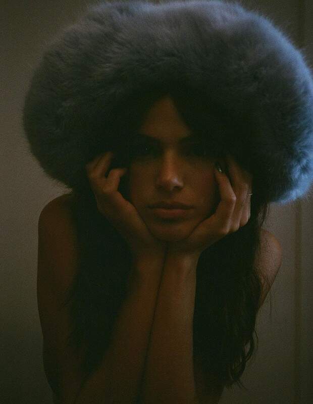 Em um dos cliques, de topless, ela usou um chapéu de pelos e em outro ainda aparece com o acessório e meia calça branca. As fotos foram tiradas por Emma Brewin.