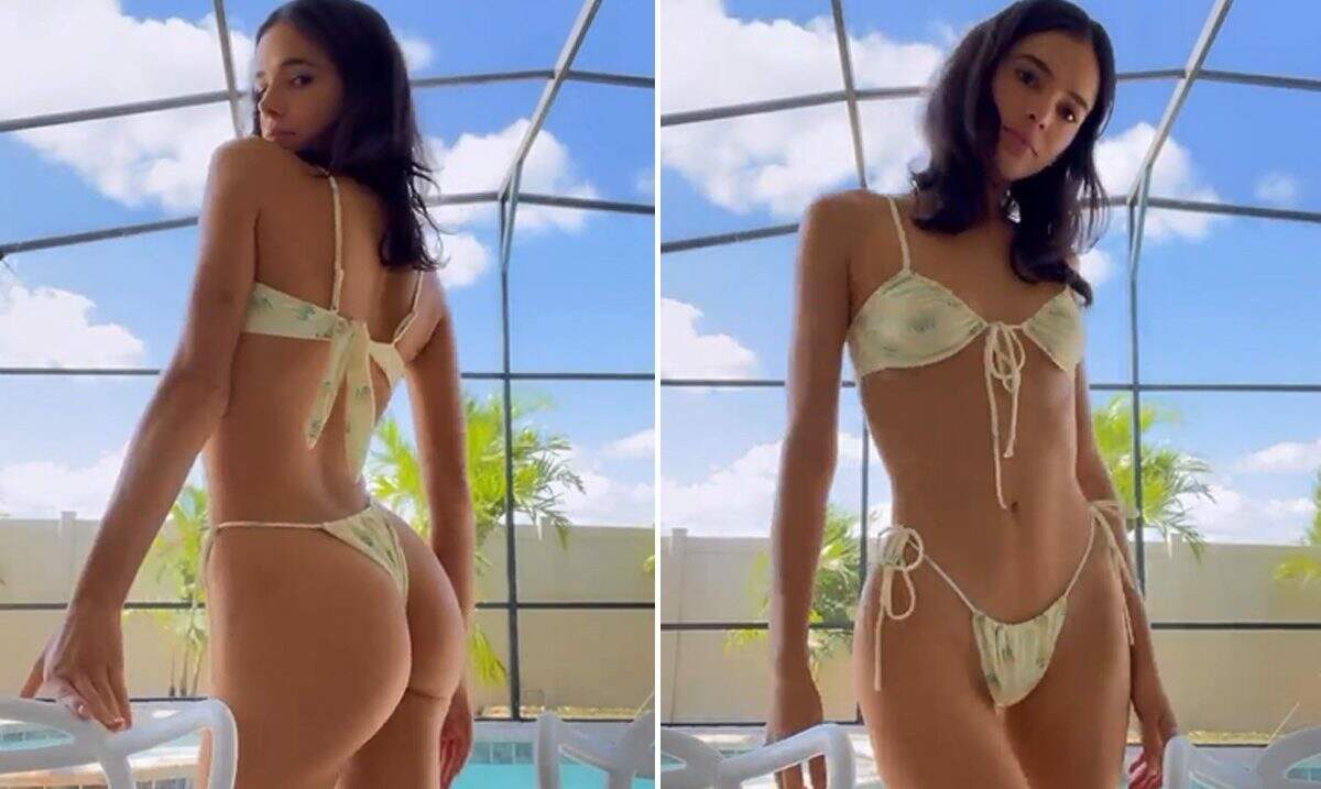 Foto: Reprodução/InstagramBruna Marquezine voltou a impressionar pela silhueta ao postar um vídeo em que aparece de biquíni de lacinho asa-delta à beira da piscina. O registro foi publicado por ela no seu perfil no Instagram.