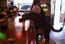 Garçom serve copo de leite para um gato que apareceu em seu bar