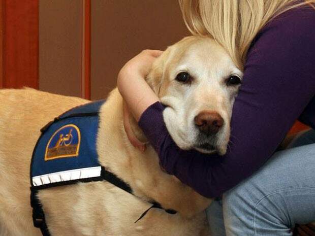 Cachorros são treinados por dois anos para dar suporte emocional às vítimas. (Crédito: Reprodução)
