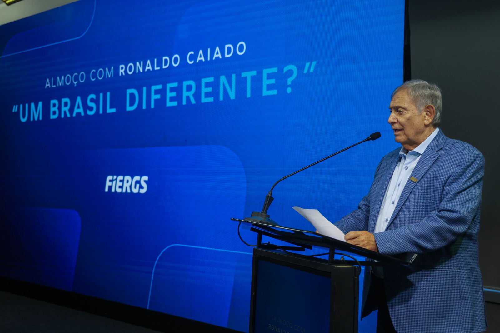 O auditório do Sistema FIERGS recebeu o pré-candidato à Presidência da República Ronaldo Caiado, em um encontro marcado pela reflexão sobre os rumos da economia e da política nacional. A palestra, intitulada “Um Brasil Diferente?”, reuniu lideranças empresariais, autoridades estaduais e municipais, além de representantes das principais federações do setor produtivo.
