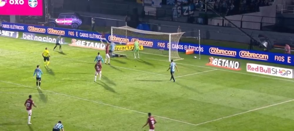 Além de perder para o Bragantino, o Grêmio contou com um lance estranho durante a noite desta quinta-feira (14). O lateral-direito João Pedro, no chão, desviou de cabeça contra o próprio gol e abriu o placar para a equipe paulista.