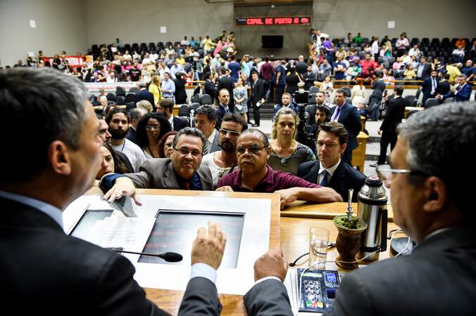Em uma sessão extraordinária de quase oito horas, marcada por protestos de servidores, ambientalistas e protetores dos animais, a Câmara de Vereadores de Porto Alegre aprovou nessa segunda-feira o projeto de lei complementar do Executivo que cria secretarias municipais, estabelece suas finalidades e competências, extingue secretarias e dispõe sobre a organização administrativa do Município.