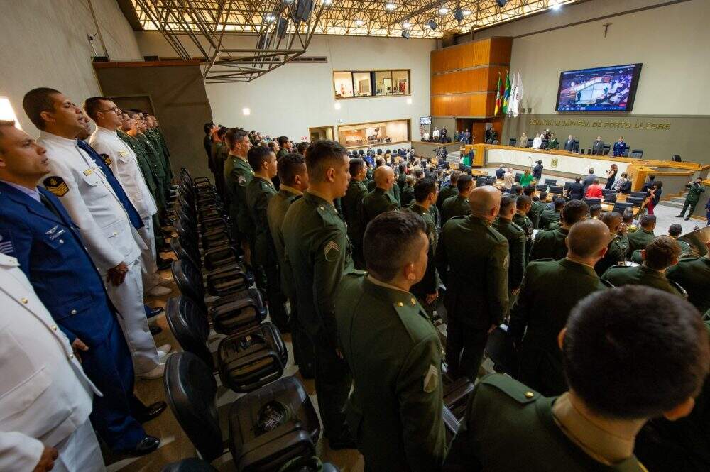 A Câmara Municipal de Porto Alegre realizou, nesta segunda-feira (18), solenidade em homenagem ao Dia do Exército Brasileiro, celebrado no dia 19 de abril. O general Rolemberg Ferreira da Cunha, comandante da 6° divisão do Exército, representou o Comando Militar do Sul.