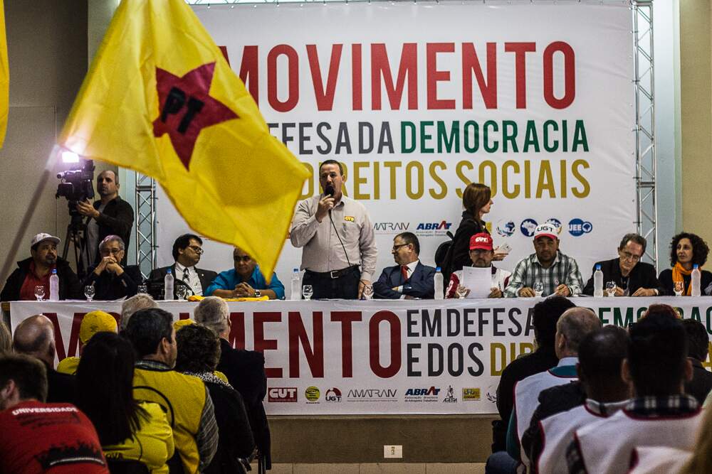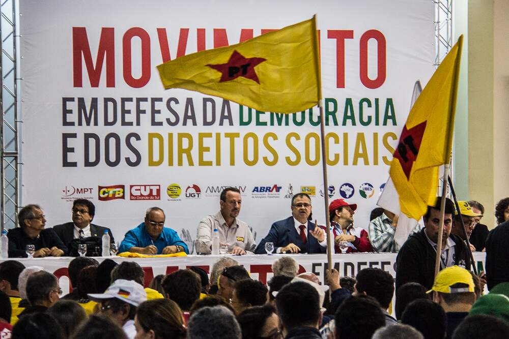 Cerca de 1,5 mil pessoas participam de uma reunião no salão da igreja Pompéia, no Centro de Porto Alegre, diz o presidente do PT municipal, Rodrigo Oliveira.