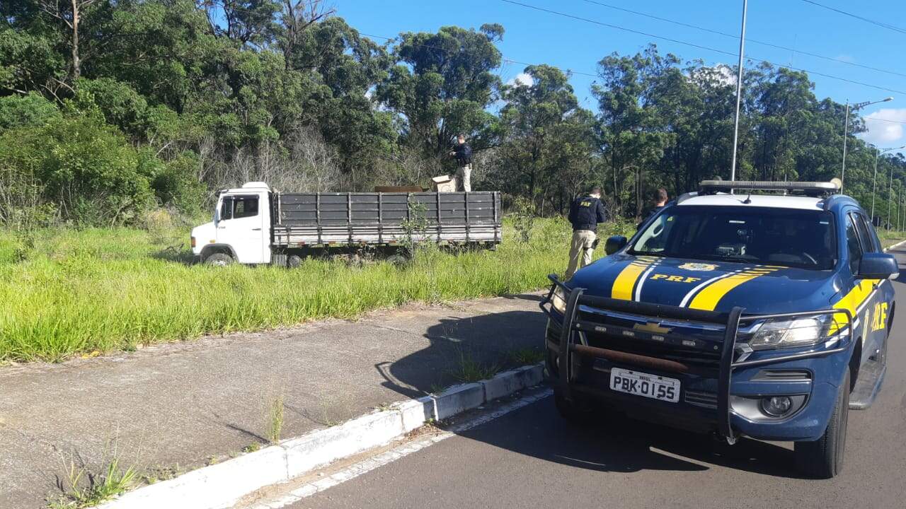 O veículo estava carregado aparentemente com uma carga de pallets mas, embaixo deles, havia cigarros