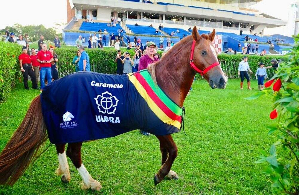 O cavalo Caramelo, símbolo de superação das enchentes que atingiram o Rio Grande do Sul, em 2024, foi homenageado no último sábado (25) no Jockey Club de Porto Alegre. Durante a programação, o sexto páreo recebeu uma medalha com o nome do animal, em reconhecimento à sua história e ao impacto que gerou em todo o País.