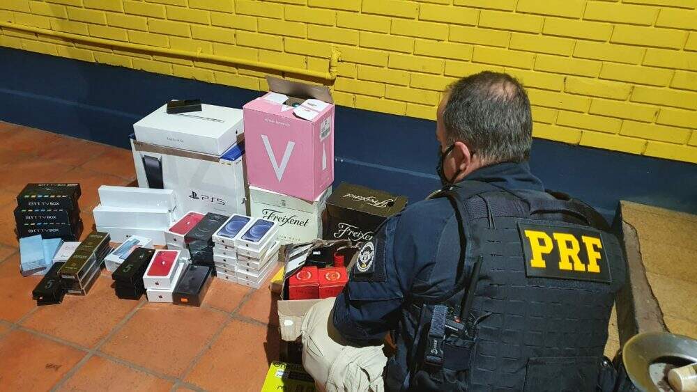 Os eletrônicos estavam escondidos em fundos falsos de caixas cheias de cuias de chimarrão. O condutor, um homem de 37 anos, declarou que adquiriu os produtos no Paraguai e que levaria para Araranguá, em Santa Catarina.