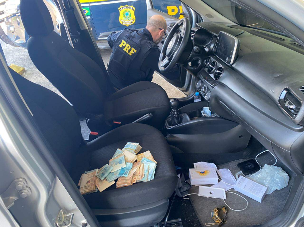 Foto: PRF/DivulgaçãoNa tarde desta sexta-feira (29), a PRF (Polícia Rodoviária Federal) prendeu um criminoso dirigindo um Cronos furtado. Ele foi abordado na BR-290, em Porto Alegre, transportando 27 mil reais sem procedência.