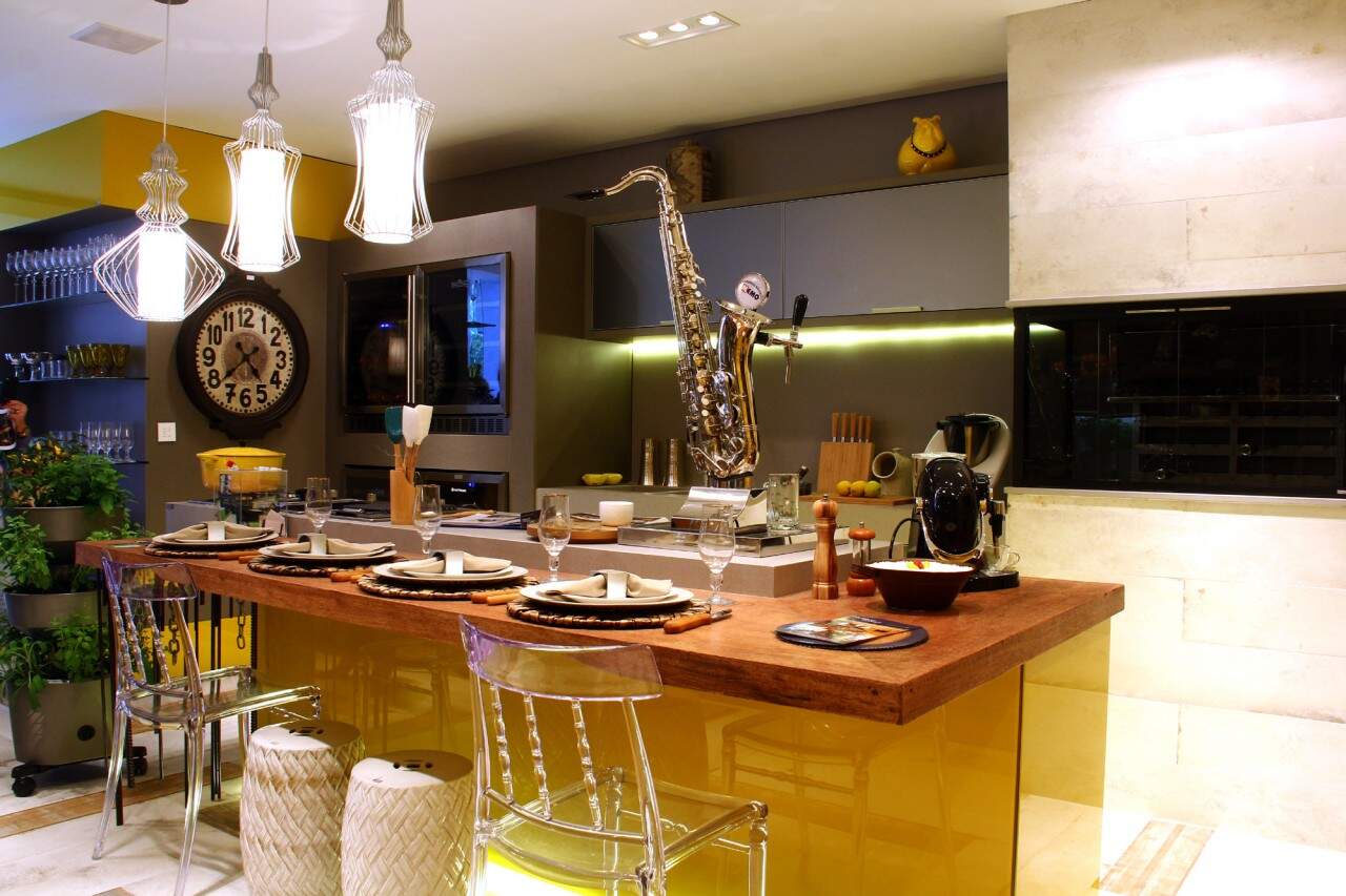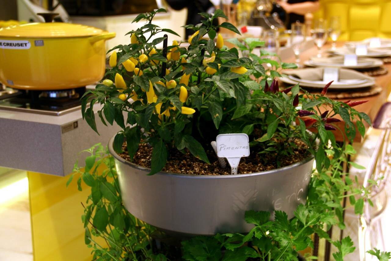 Cores alegres como amarelo combinado com o cinza são predominantes. Todos os detalhes de piso de porcelanato, paredes de gesso e decoração correspondem ao clima do ambiente. A sustentabilidade é outro ponto forte abordado pelas arquitetas. Elas levaram às estantes objetos que pudessem favorecer a preparação dos alimentos. Duas hortas podem ser encontradas no plantário elétrico (3,7 mil reais), criado por alunos da Ufrgs (Universidade Federal do Rio Grande do Sul). Nela, é possível manter o cuidado com manuseio automático, mantendo os reservatórios de água por duas semanas.