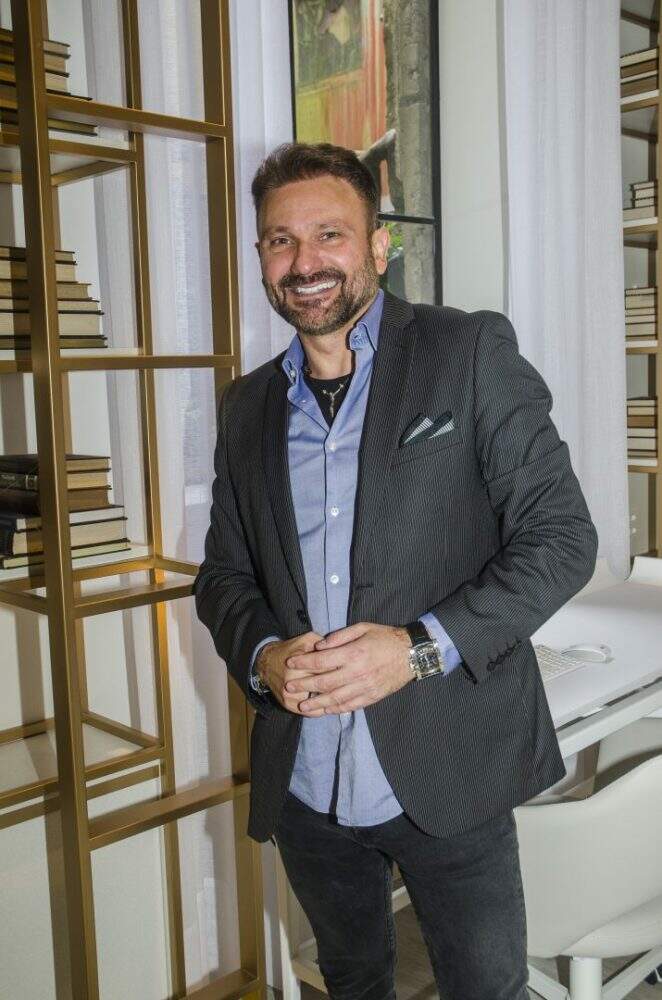 “Por ter ele sido educador, fundador de um colégio e secretário de Educação e Cultura, incluí as torres-bibliotecas no home office. Por ter sido biólogo, incluí um jardim vertical, tudo no espaço central”.