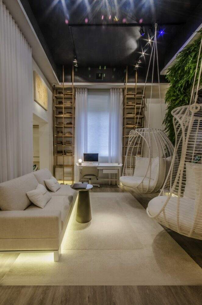 – Dois balanços brancos Vivá do designer Sérgio Matos com 1,50 m de diâmetro, trazidos pela Jasmim;