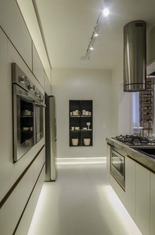 – Puxadores das portas, tanque de inox e coifa Elettromec da Puxadores & Cia;