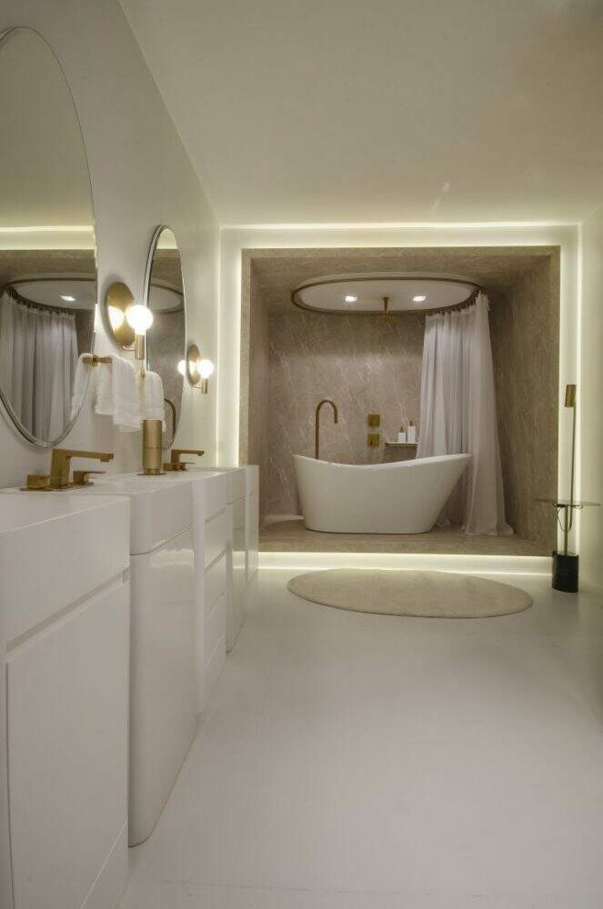 – Louças e metais Deca – acabamento Gold Mate (fosco) e Red Gold (brilho);