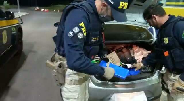 Os policiais revistaram o carro e encontraram os 52 quilos de maconha dentro do porta-malas.
