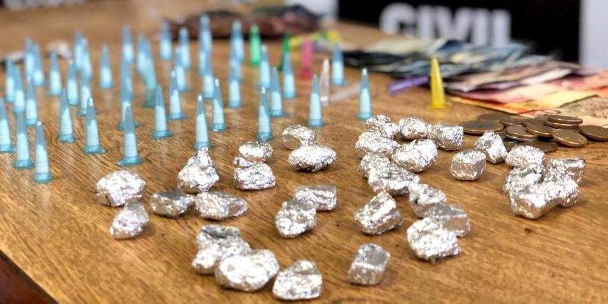 Foto: Polícia Civil/DivulgaçãoMais uma edição da Operação Anjos da Lei, que coíbe o tráfico de drogas nas proximidades de escolas, foi realizada na Região Metropolitana de Porto Alegre. Agentes da 1ª DP de Sapucaia do Sul prenderam um casal de traficantes em flagrante. Houve a apreensão de 50 pinos de cocaína, 37 porções de maconha e 11 pedras de crack, além de R$ 166,00 em dinheiro.
