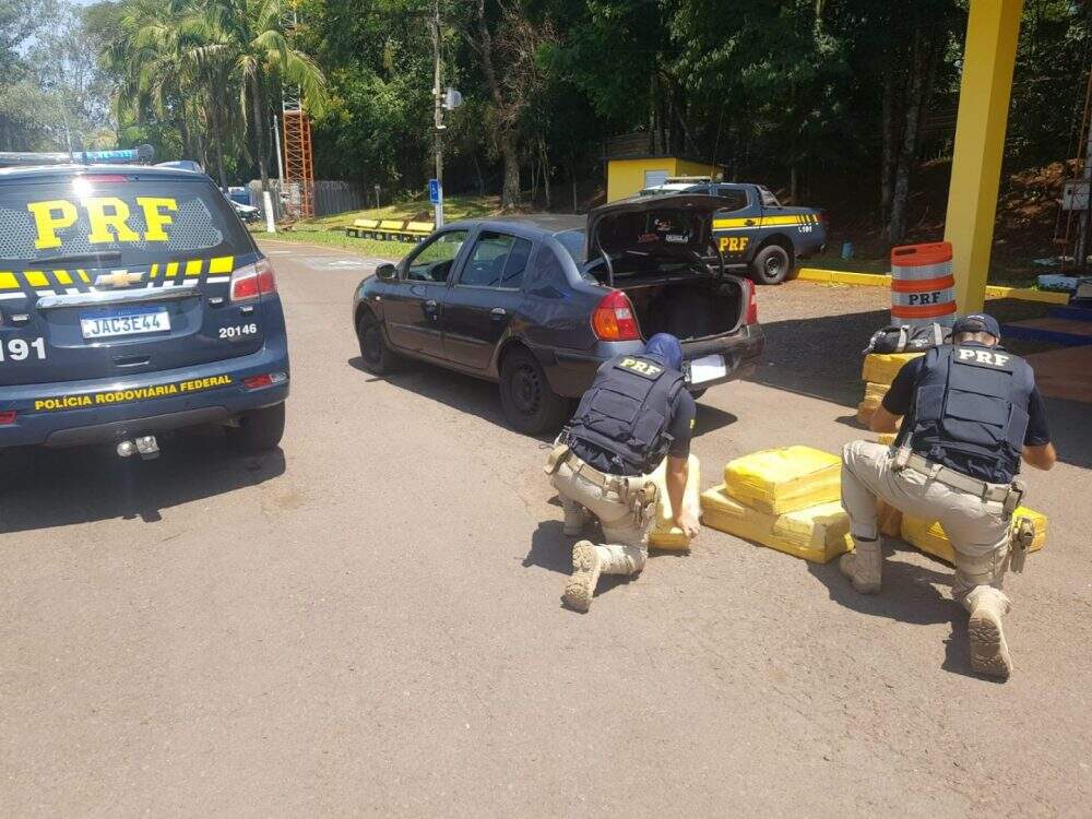 Após receberem informações do serviço de inteligência, os policiais abordaram um Clio emplacado em Santa Catarina. No banco traseiro e no porta-malas do automóvel havia vários fardos de maconha, totalizando 208 quilos.