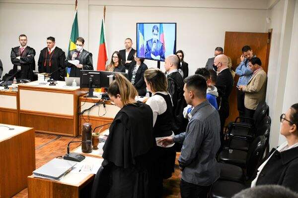 Foto: Márcio Daudt/TJ-RSFoi encerrado às 21h45min desta terça-feira (5) o segundo júri do Caso Ronei Jr. com a condenação dos três réus. Alisson Barbosa Cavalheiro e Volnei Pereira de Araújo foram condenados a 35 anos e 4 meses de reclusão, cada um, e Geovani Silva de Souza condenado a 41 anos e 6 anos de reclusão. A pena de Geovani foi maior em razão de não ter sido beneficiado com a atenuante da menoridade relativa, uma vez que era maior de 21 anos na data dos fatos. Todos em regime inicial fechado.
