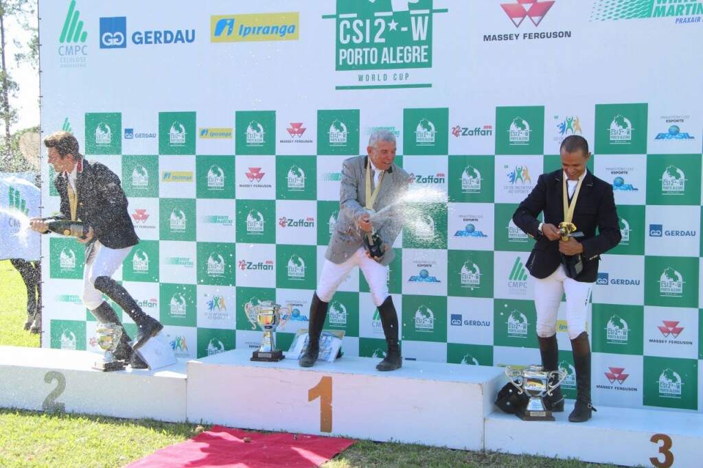 Depois de duas horas de prova, o brasileiro César Almeida subiu no lugar mais alto do pódio para comemorar pela quarta vez o título máximo do 48º CSI2*-W (The Best Jump 2016). Em sintonia com o seu Zojasper Império Egípcio, ele venceu o Grande Prêmio Celulose Riograndense ao completar os dois percursos da prova sem faltas, garantindo o ouro em 46,12 segundos de tempo na segunda passagem. “É uma grande emoção vencer o The Best Jump. E ainda maior quando se é o primeiro da história do concurso a fazer isso quatro vezes“, vibrou o tetracampeão com o ouro nas mãos. César Almeida ganhou o troféu The Best Jump em 2003, com Salamandra Chapman Rougue, em 2005, montando Singular Joter e, em 2013 fazendo conjunto com Vanity Império Egípcio.