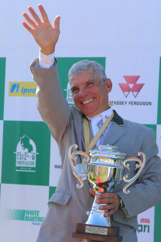 Depois de duas horas de prova, o brasileiro César Almeida subiu no lugar mais alto do pódio para comemorar pela quarta vez o título máximo do 48º CSI2*-W (The Best Jump 2016). Em sintonia com o seu Zojasper Império Egípcio, ele venceu o Grande Prêmio Celulose Riograndense ao completar os dois percursos da prova sem faltas, garantindo o ouro em 46,12 segundos de tempo na segunda passagem. “É uma grande emoção vencer o The Best Jump. E ainda maior quando se é o primeiro da história do concurso a fazer isso quatro vezes“, vibrou o tetracampeão com o ouro nas mãos. César Almeida ganhou o troféu The Best Jump em 2003, com Salamandra Chapman Rougue, em 2005, montando Singular Joter e, em 2013 fazendo conjunto com Vanity Império Egípcio.