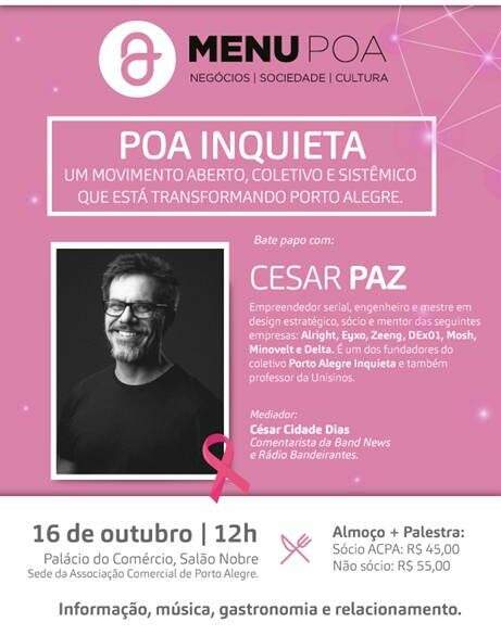Cesar Paz é o palestrante do próximo Menu Porto Alegre, da ACPA, no próximo dia 16