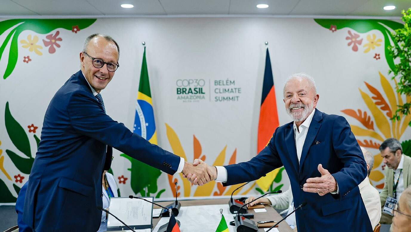 O chanceler alemão esteve no Brasil para participar da Cúpula dos Líderes em Belém, antes do início oficial da COP30, e participou de um encontro bilateral com o presidente Luiz Inácio Lula da Silva.