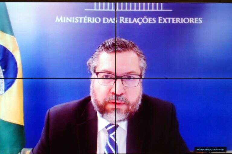 Política Chanceler Ernesto Araújo nega atraso em vacinação e diz que quebra de patentes não melhora enfrentamento da Covid-19