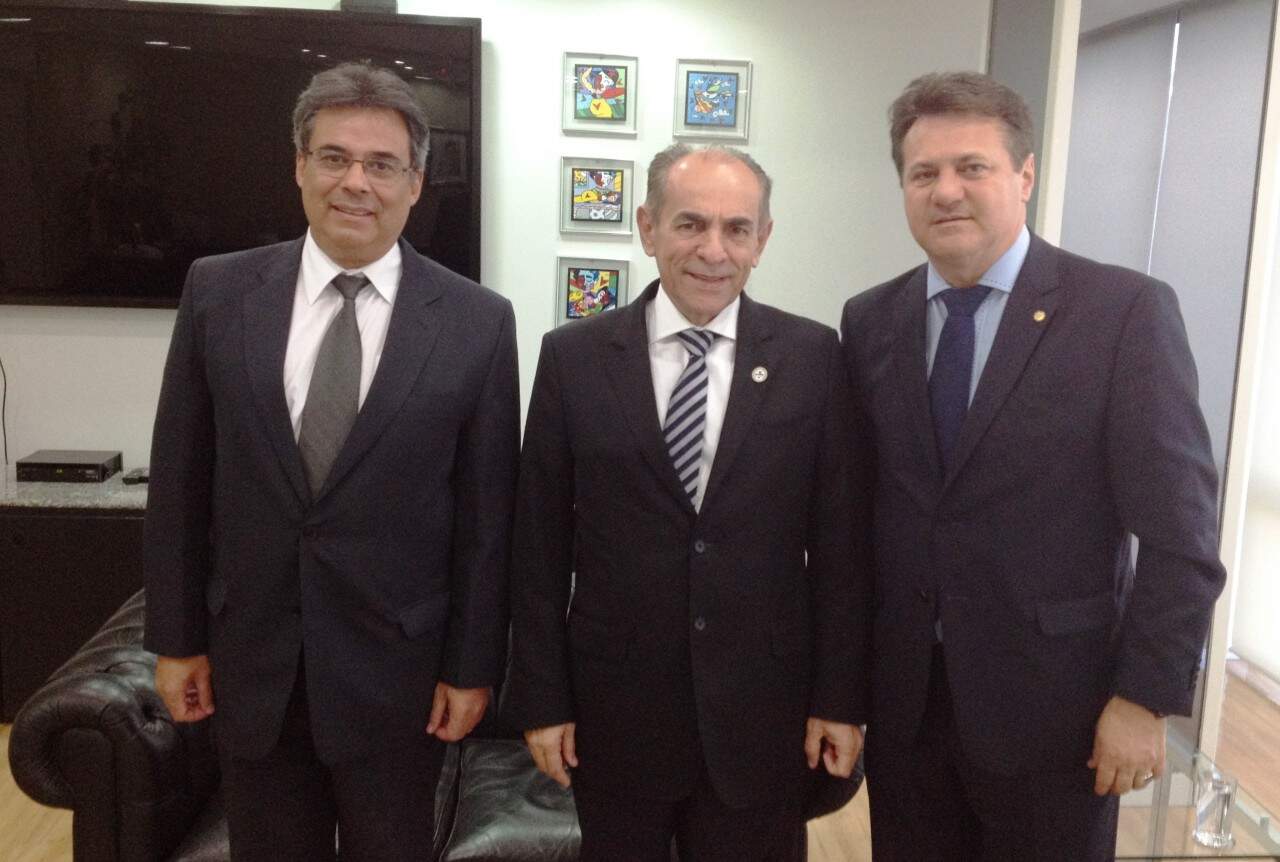 Deputado Cherini esteve com o Ministro da saude,acompanhado pelo diretor da associação dos Servidores, Everton Meyer Morais. Foto Divulgação.