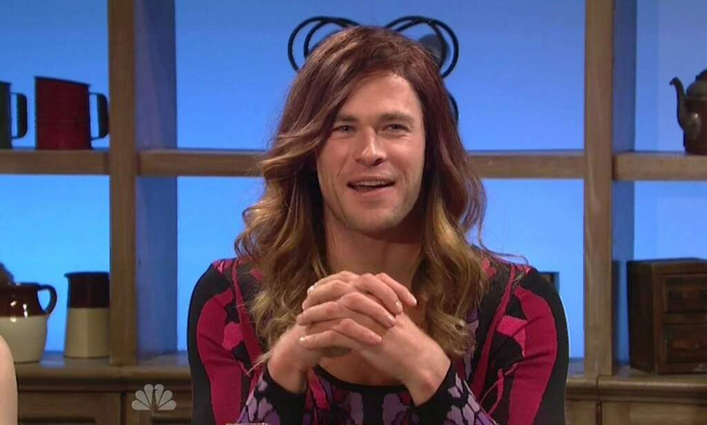 O galã Chris Hemsworth, de 32 anos, que interpreta o super-herói Thor, fez uma participação divertida no humorístico “Saturday Night Live”. O ator australiano apareceu vestido de mulher, com direito à peruca e maquiagem, para encarnar Claire, uma apresentadora fictícia.