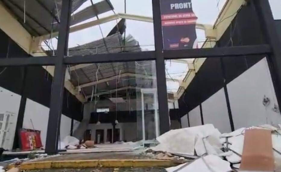 Diversos estabelecimentos ficaram destelhados, após o forte temporal na noite de segunda Além disso, sem energia elétrica em boa parte da cidade, duas UPAs (Unidades de Pronto Atendimento) estão funcionando com auxílio de gerador.