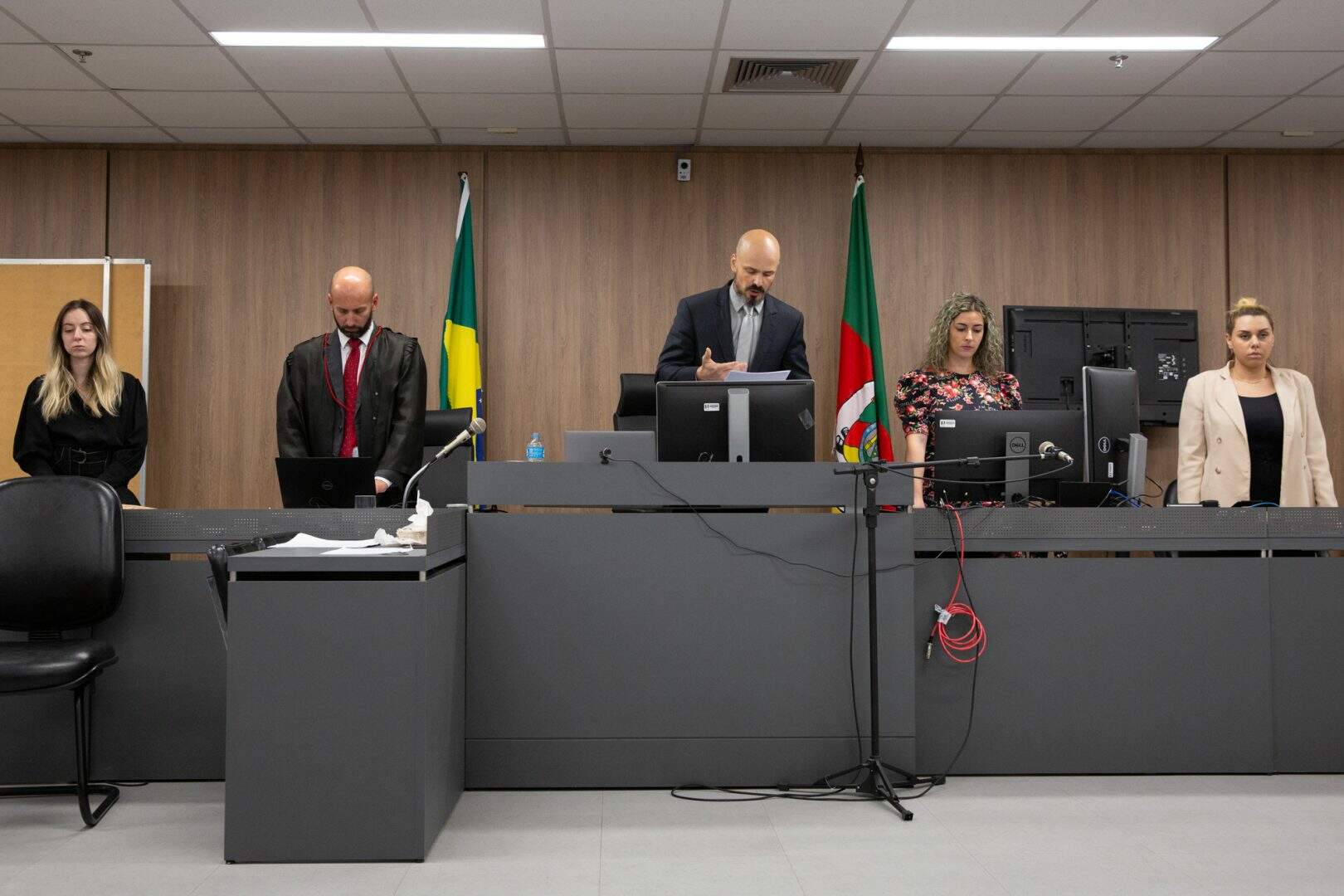 Foto: Juliano Verardi/TJRSO júri de cinco acusados de matar um casal e a filha, de 1 ano, em 2018, na Zona Norte de Porto Alegre, terminou na noite de sexta-feira (24), após dois dias de duração. O Conselho de Sentença condenou os réus pelos três homicídios triplamente qualificados (motivo torpe, perigo comum e emboscada) e associação criminosa.