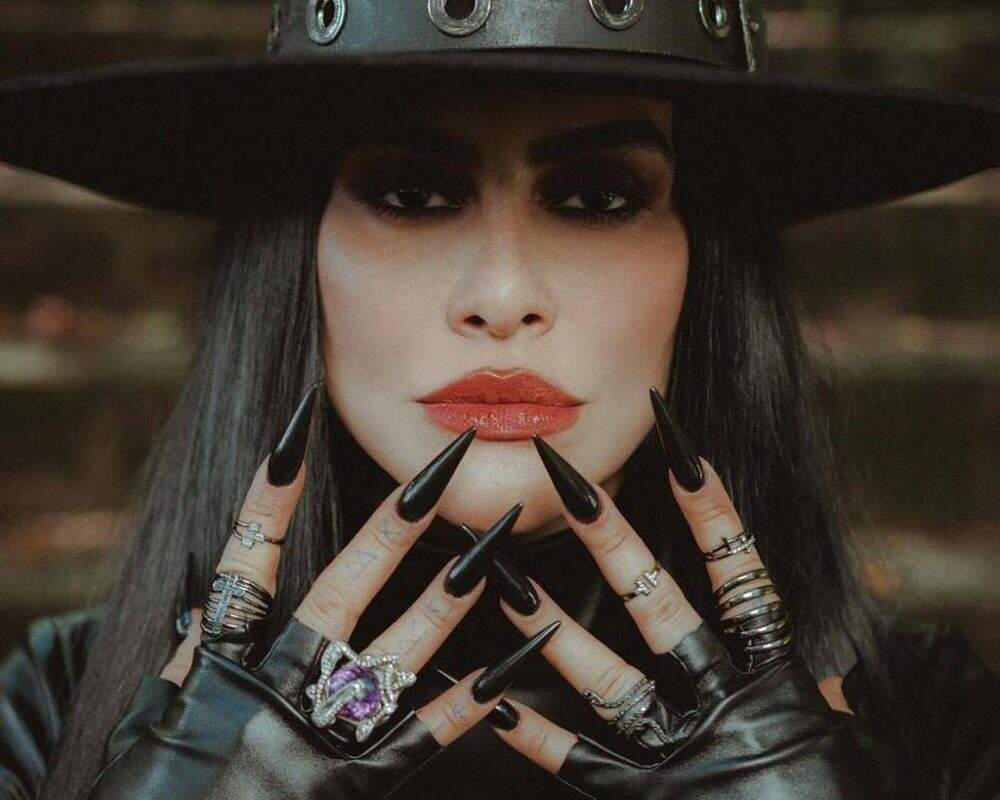 A atriz e cantora Cleo publicou uma foto na noite de quinta-feira (19) ironizando críticas que recebeu por usar as unhas bem compridas. “Por que choras, Zé do Caixão?”, escreveu ela na legenda da imagem, em que aparece toda de preto, com batom vermelho e as mãos em evidência.