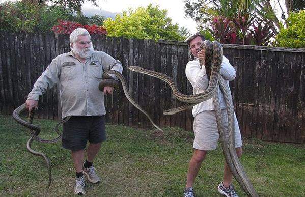 Quando inspecionou o local, Walton flagrou duas cobras enormes brigando no telhado enquanto outras duas, menores,  observavam. As pítons retiradas tinham 4,5 metros, 4 metros, 3 metros e 2,5 metros de comprimento.