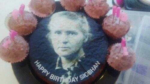 “Minha prima na Inglaterra pediu aos colegas uma torta de aniversário com a Mariah Carey. Mas eles não entenderam direito e fizeram esta torta. É a Marie Curie, parecendo bem festiva”, explicou Harriet Lye em sua conta no twitter.