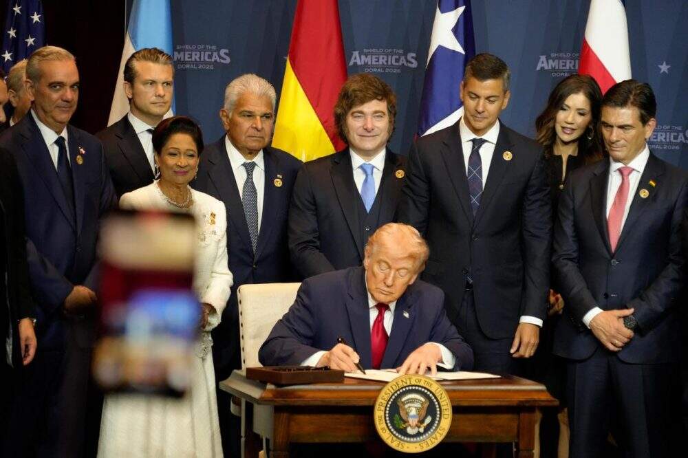 O presidente dos Estados Unidos, Donald Trump, anunciou a coalizão entre países da América Latina para combater cartéis. O republicano recebeu, neste sábado (7), líderes latinos para o evento batizado como “Escudo da América”. “Vamos fazer coisas incríveis, a região de vocês foi abandonada pelos EUA, que olhou para regiões em que nem era bem recebido”, disse o presidente.