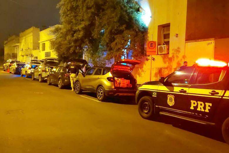 Foto: PRF/DivulgaçãoA Polícia Rodoviária Federal (PRF) interceptou na BR-293, em Dom Pedrito, na Região da Campanha, um comboio de quatro veículos transportando várias caixas de vinhos de alto valor importados ilegalmente do Uruguai. A ação, que aconteceu na madrugada deste sábado (26), contou com o apoio da Brigada Militar.