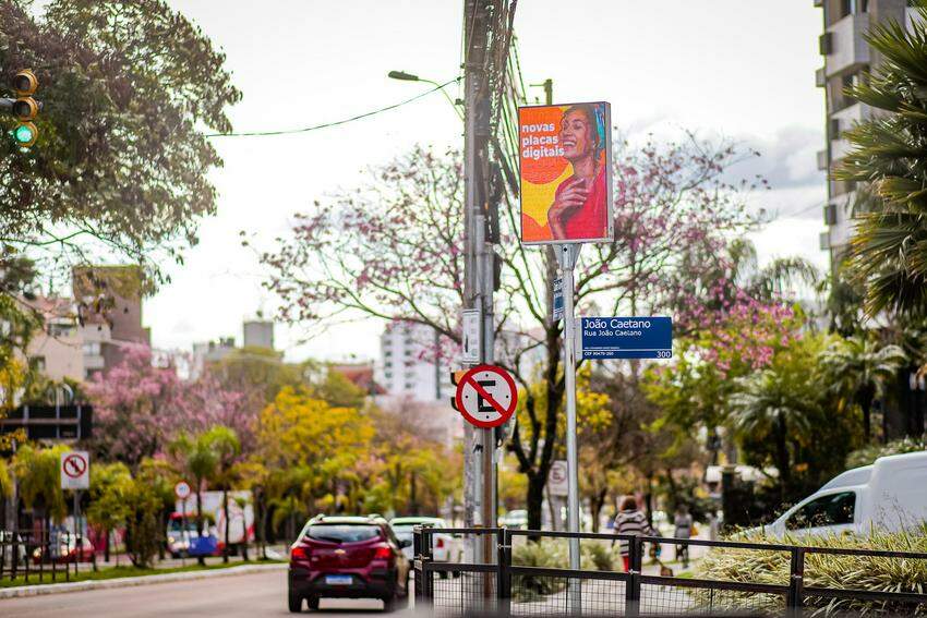 Foto: Alex Rocha/PMPAA instalação de painéis eletrônicos junto às placas de identificação das ruas de Porto Alegre começou na quinta-feira (26). O primeiro equipamento foi colocado na esquina da rua João Caetano com a avenida Carlos Gomes, no bairro Três Figueiras.