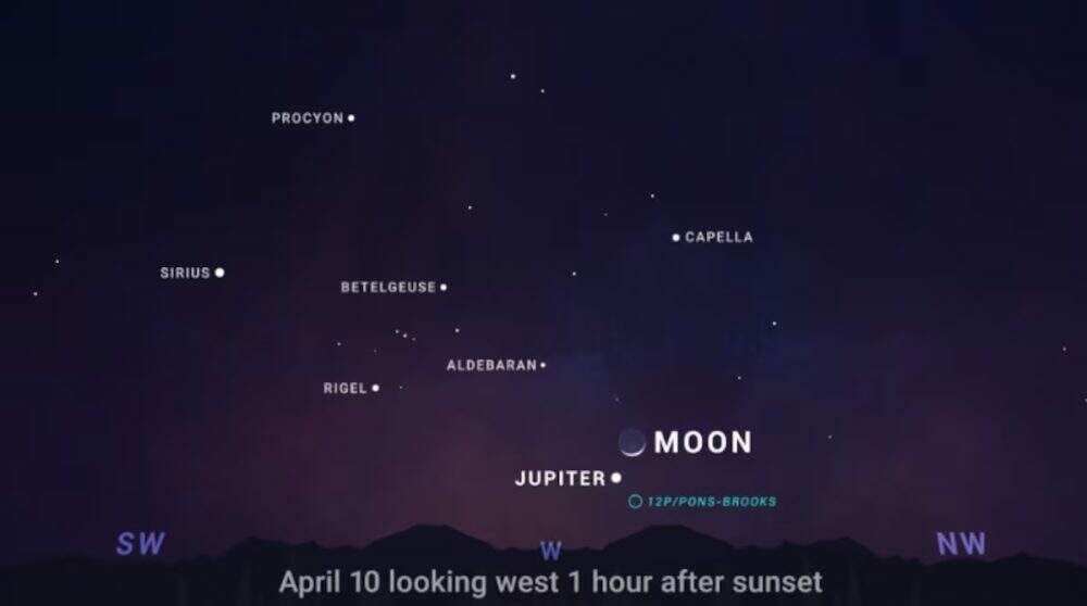 Em abril, o ‘Cometa do Diabo’ estará abaixo da constelação de Touro e, em maio, abaixo da constelação de Órion. “Os observadores deverão olhar para o horizonte oeste, na mesma direção do pôr do sol, para ver o cometa. Ele estará visível logo após o pôr do sol, primeiramente abaixo da constelação de Touro, e a partir de maio, abaixo da constelação de Órion, sempre por volta das 17h40min às 18h30min”, afirma Monteiro.