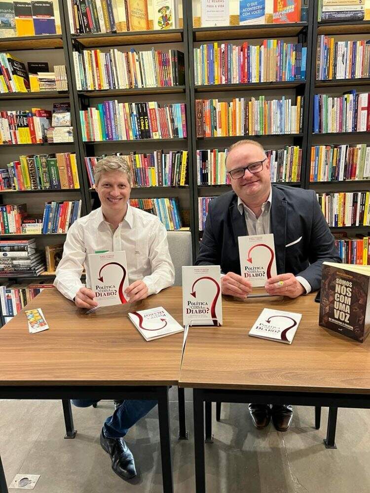 O comunicador da Rádio Pampa e da TV Pampa Tiago Albrecht e o deputado federal Marcel van Hattem lançaram neste sábado (23), em Porto Alegre, o livro “Política é coisa do diabo?”. De acordo com os autores, o objetivo da obra é debater o papel do cristão na política, porém, sem a pretensão de ser um manual de conduta político-partidária ou de como os cristãos devem se portar, mas, sim, propor questionamentos sobre o tema.