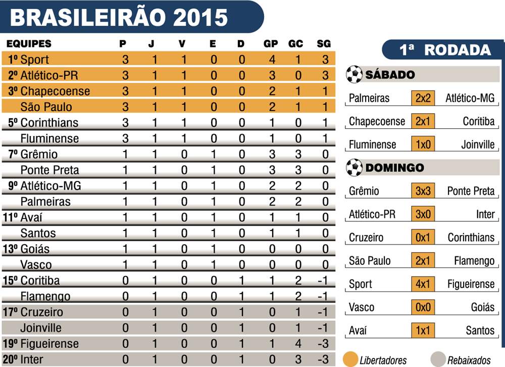 O Sport terminou esta primeira rodada como líder e o Colorado está na lanterna.