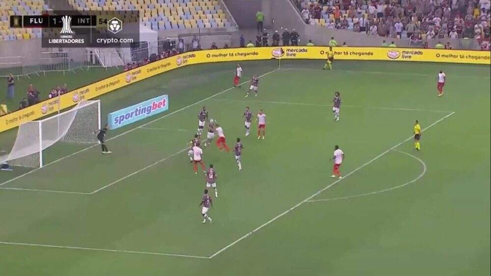 “Me disse um só jogador que quando cabeceia pega na mão”, diz o árbitro ao VAR, que não identifica o jogador. O VAR respondeu que vai revisar o lance. Na sequência, é possível ouvir o juiz informando também a um jogador do Fluminense que o toque de mão seria checado.