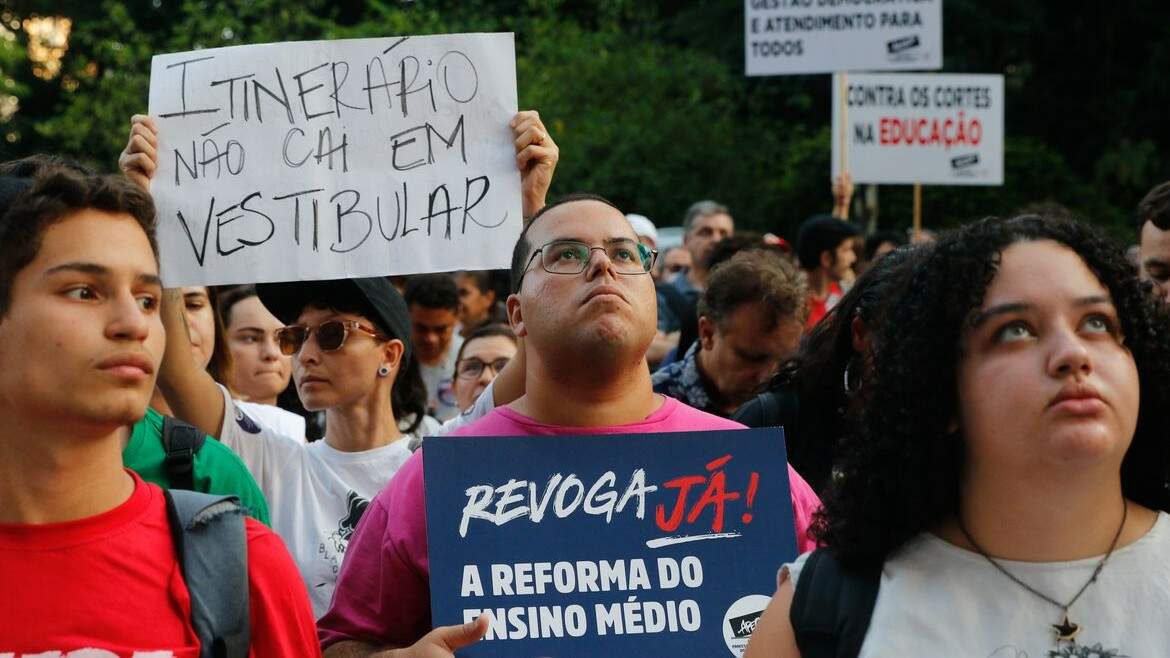 A revogação do Novo Ensino Médio tem sido uma reivindicação de entidades estudantis e de muitos especialistas. No início do mês, o governo federal oficializou a suspensão do cronograma de implementação da nova etapa de ensino. Antes disso, em março, o MEC já havia anunciado a consulta pública para avaliação e reestruturação da política nacional de ensino médio, que ainda deve durar cerca de dois meses, com possibilidade de prorrogação.
