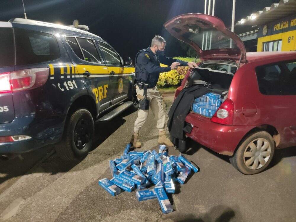 O Clio utilizava placas clonadas e estava carregado com cigarros contrabandeados do Paraguai, empilhados em cima do banco traseiro e no porta-malas. A carga é estimada em 12 mil maços, com valor de mercado de 60 mil reais.