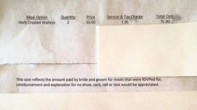 Noivos exigem que convidados reembolsem os gastos que tiveram com alimentação. (Imagem: Reprodução)